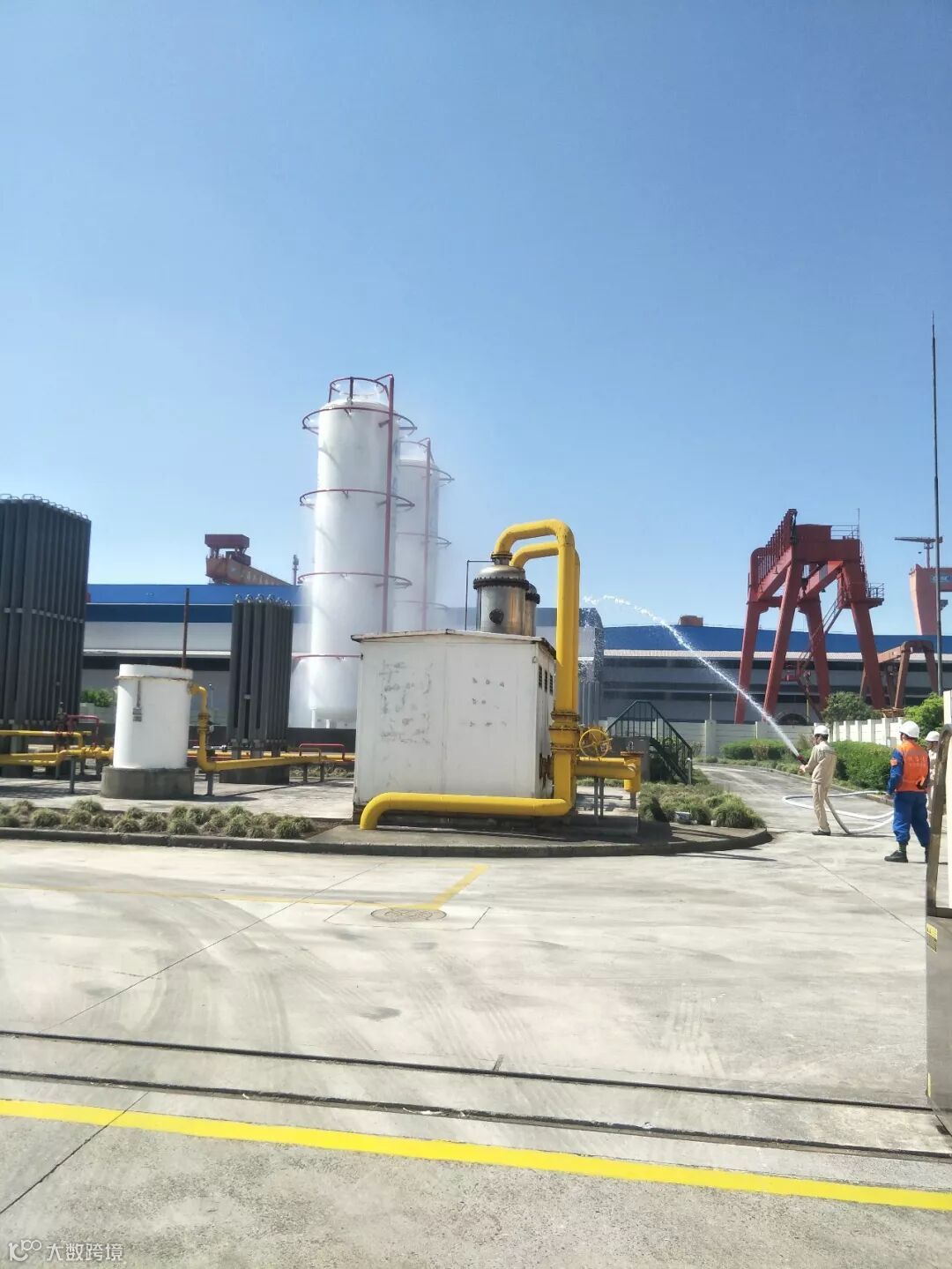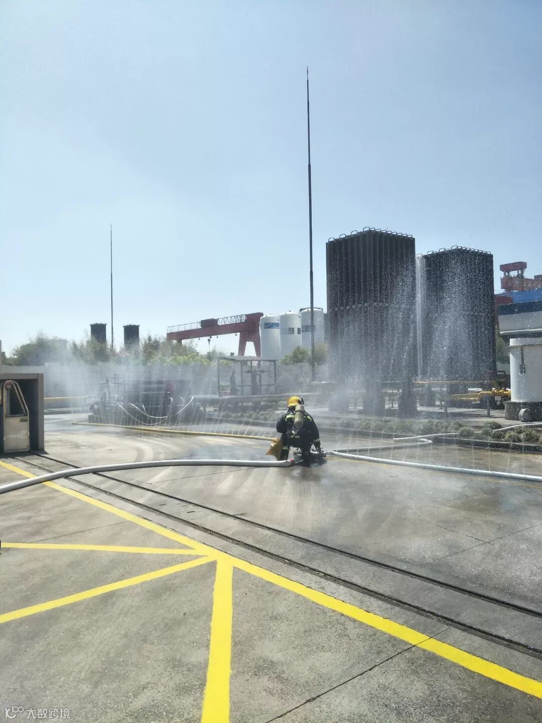 本次演练以实战出发,模拟了事故报警、应急处置、出水稀释天燃气、消防中队紧急出动及水带铺设、泄露点堵漏等项目。