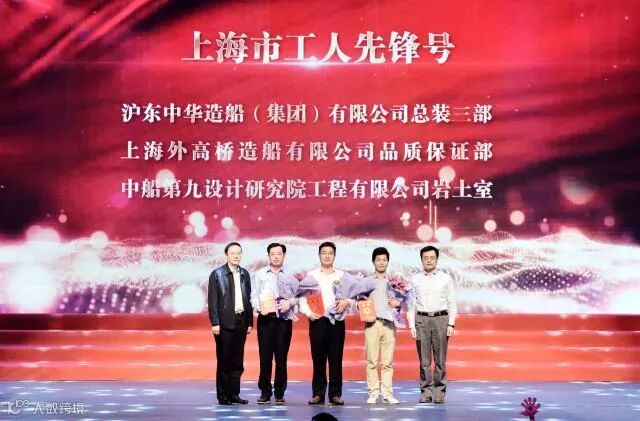 5月4日晚,中船上海船舶工业有限公司“工人伟大、劳动光荣”庆祝“五一”国际劳动节先进表彰大会暨职工文艺演出在浦东滨江大道1862时尚艺术中心隆重举行。会上表彰了2018年全国和上海市五一劳动奖、2017年上海工匠、船舶工匠等一批先进集体和个人。公司品质保证部被光荣授予“上海市工人先锋号”,加工部龚一震、搭载部樊冬辉、工艺研究所赵立苏荣获“船舶工匠”称号。