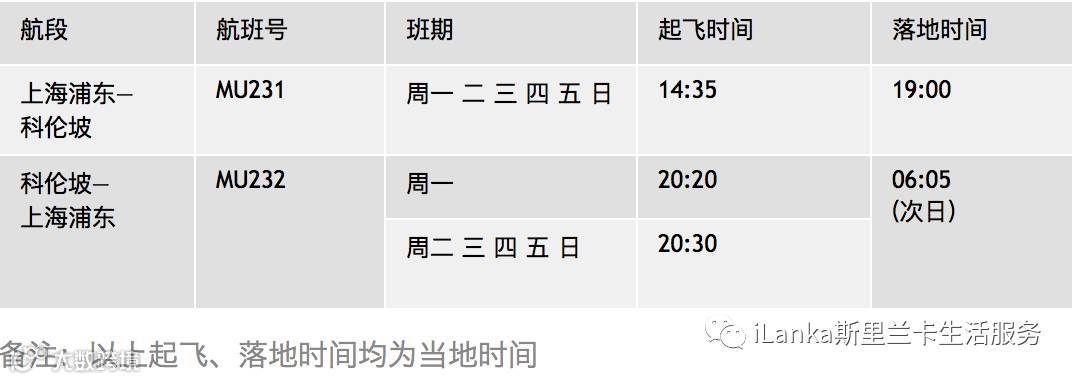 本来,东航执行的上海至科伦坡往返的航班,是周一、三、五、日有航班。从7月11日至9月7日,每周二和周四增加了往返航班。