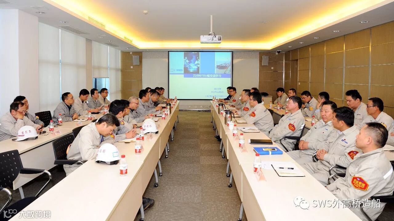 11月1日下午,上海江南长兴造船有限责任公司副总经理胡宏宇率队到长兴重工交流集装箱船建造经验,长兴重工常务副总经理陈卫平、副总经理邹永毅、生产总监郭长林及21000TEU项目组成员参加了此次会议。