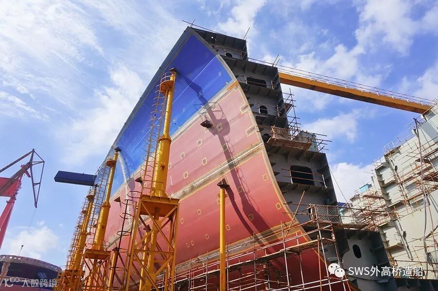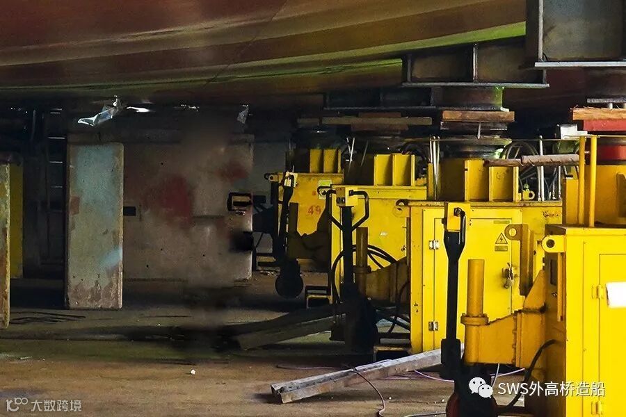 为了实现此次超大型总段移位,长兴重工搭载部做了充分策划准备,在安全、质量、工艺等方面组织人员多次筹划移位方案,合理安排人员,科学布置三维顶升小车,多次与设备厂商在关键技术上进行探讨,模拟操控演练。拉划线班组利用先进的OTS模拟搭载技术,预先分析出移位总段余量,同时考虑到昼夜温差对分段收缩的影响,特意将余量修割时间安排在凌晨,将温度对分段的影响降到最低。最终在相关部门的通力配合下顺利完成总段移位。