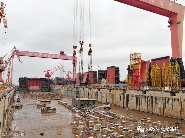 一大早,前一天上午刚刚见证了首制船H1438顺利出坞的二号船坞又热闹起来。搭载部的员工已连夜马不停蹄地微调了坞墩摆放,并考虑到天气因素,更换了坞墩顶的薄膜,以保护新下坞分段的油漆。小雨过后,焕然一新、排列整齐的坞墩方队,犹如枕戈待旦、严阵以待的士兵们,摩拳擦掌跃跃欲试地期盼着投入到新一轮的生产周期中。