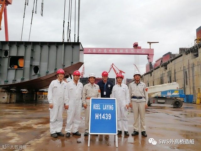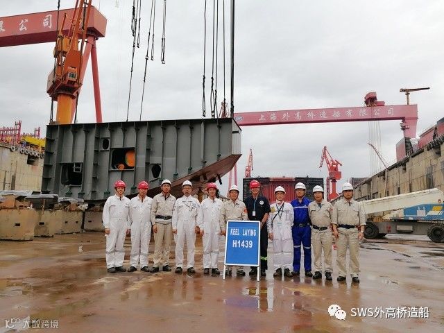 中矿船东驻厂项目组经理王作安先生、船东项目组顾问马库斯.莫拉(Marcus F. Moura)先生、DNVGL船级社驻厂组矿砂船项目经理茅震宇先生,中国船级社驻厂组矿砂船项目经理沈剑先生,外高桥造船总经理助理吴拥军先生和船东、船检驻厂代表以及公司相关部门代表共同出席了下坞仪式。宾主双方在新入坞的H1439船分段前合影留念,吴总代表公司向为保障生产节点顺利推进而辛勤工作的船东船检道以祝贺,并提前与各位来宾与互致国庆与中秋的节日问候。在欢庆的鞭炮声和热烈的掌声中,本船下坞节点顺利完成,也宣告着我司第三季度的生产任务圆满收官。