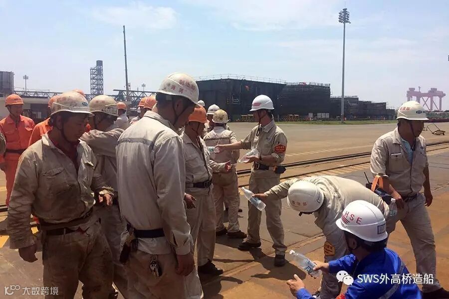 上海市近期持续高温,骄阳似火,烈日炎炎,室外温度达到38度以上,外高桥海工生产部门员工冒着酷暑仍然坚守在一线岗位上。为了切实保障广大职工的生命安全和身心健康,更好地让员工开展日常工作,7月13日上午,外高桥海工组织夏日“送清凉”活动,副总经理刘峰、生产总监李芝忠带队分别为300吨上建区域与码头H1418平台上的一线员工发放了防暑降温的清凉饮品,并对所有领取饮品的一线员工表示感谢,感谢大家为外高桥海工做出的贡献,并叮嘱大家要做好防暑降温及安全防护工作。