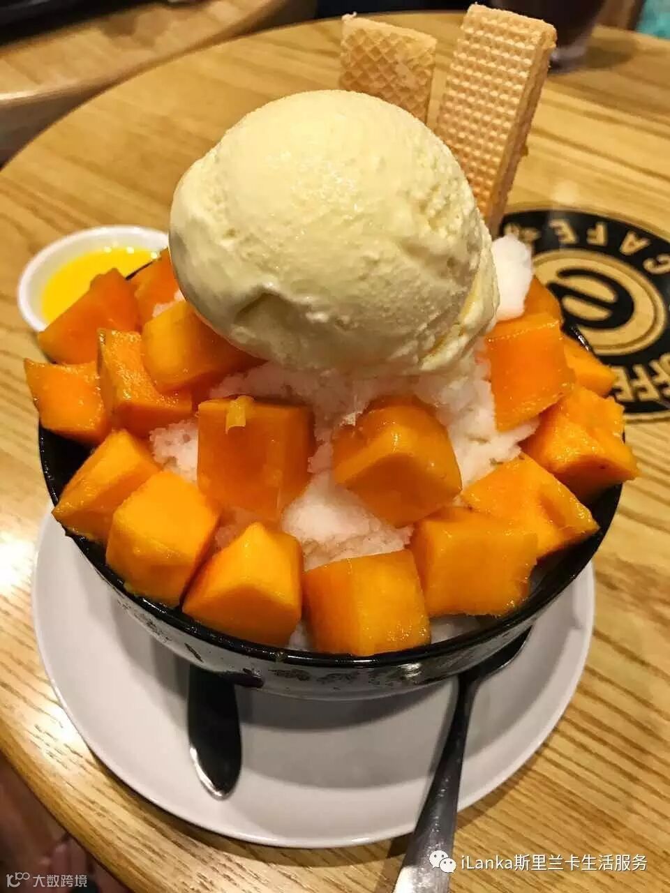 冰沙里的冰特别细腻,配上红豆和芒果,加上一个香草冰激凌,还有对应口味的炼奶,齐活!一勺下去,极尽所能地让各个美味一次性吃进嘴里,那种幸福感,只有吃过的人才懂!