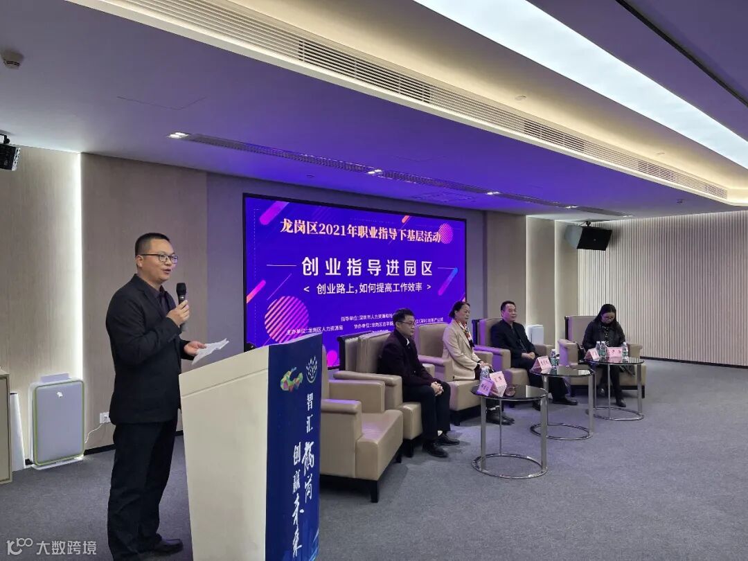 吉华街道经济服务办公室人力资源部负责人梁秀才致辞:梁秀才详细介绍了龙岗区2021年职业指导下基层活动--创业指导进园区活动背景和意义,并对参与此次活动的领导、导师以及创业者表示欢迎。