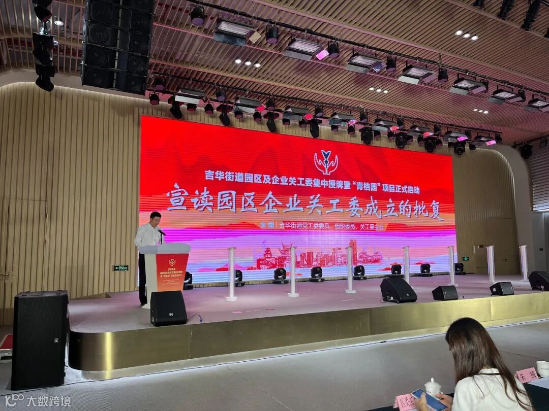 吉华街道党工委委员、组织委员、关工委主任朱楠宣读园区及企业关工委成立批复。