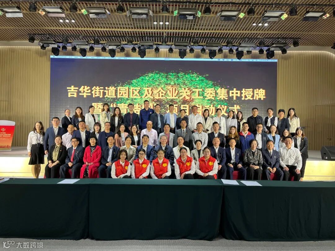 与会领导共同为吉华街道5家园区关工委、20家企业关工委集中揭牌,并共同点亮“青桔园”项目。