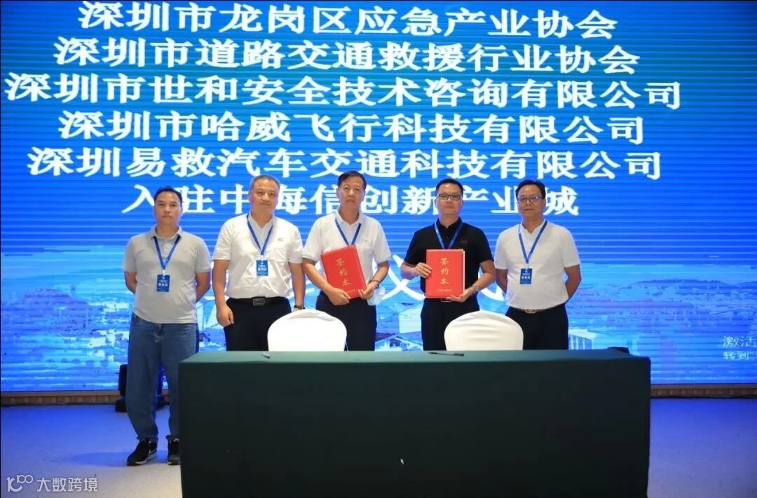 本次会议上,中海信公司副总经理邹佳俊与深圳市龙岗区应急产业协会、深圳市道路交通救援行业协会、深圳市世和安全技术咨询有限公司、深圳市哈威飞行科技有限公司、深圳易救汽车交通科技有限公司五家企业签署了入驻中海信产业园的协议,充分表达了企业对于中海信产业园的信任与支持。