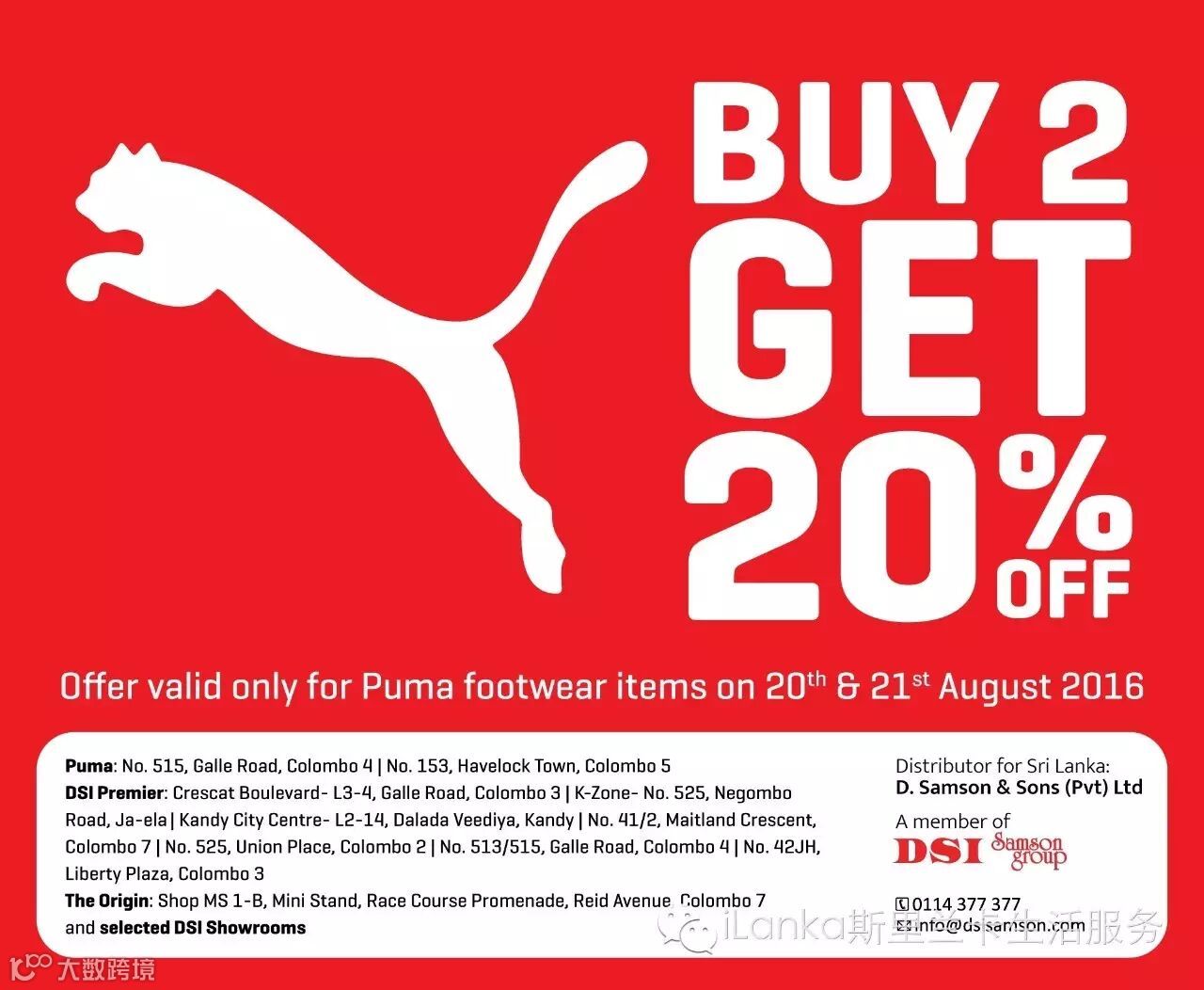 Puma助你一臂之力,本周末两天,科伦坡有Puma鞋打折活动!