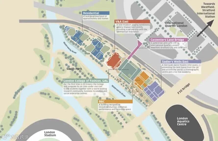 届时伦敦大学学院、BBC、沙德勒之井剧院、V&A和伦敦时装学院都将进驻此地。