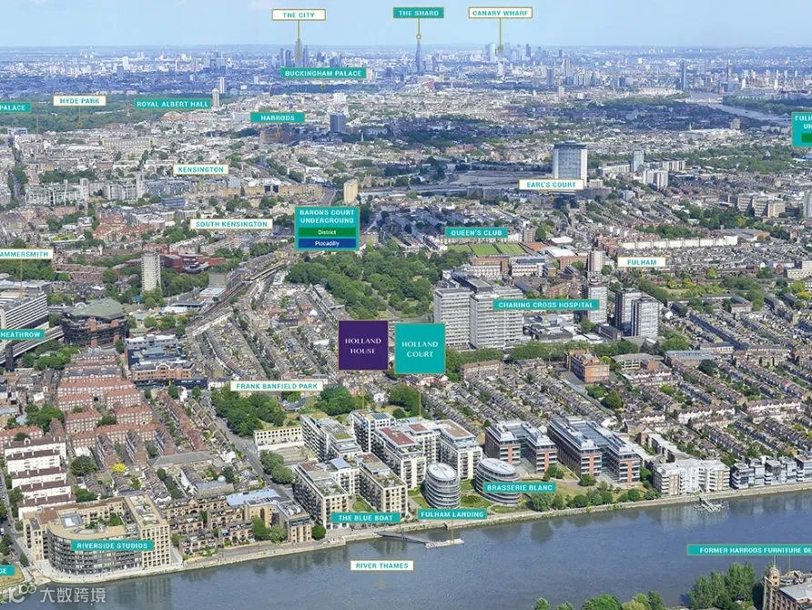 富勒姆水岸公馆是伦敦的传统富人区,泰晤士河环绕其东、西、南三面,北临肯辛顿(Kensington)、切尔西(Chelsea)和骑士桥;