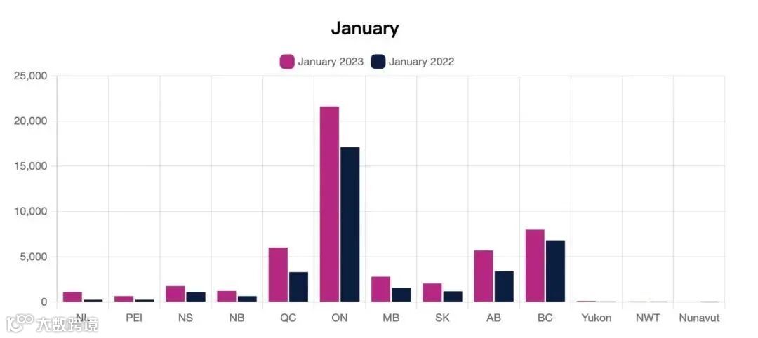 数据显示,加拿大2023年1月份迎来约50,900名新移民,同比增长44%;2月份49,500名,同比增长33%;3月份近45,000名,同比增加10%。其中,中国移民申请人约有12,000名,约占8%,与去年比例大致相同。