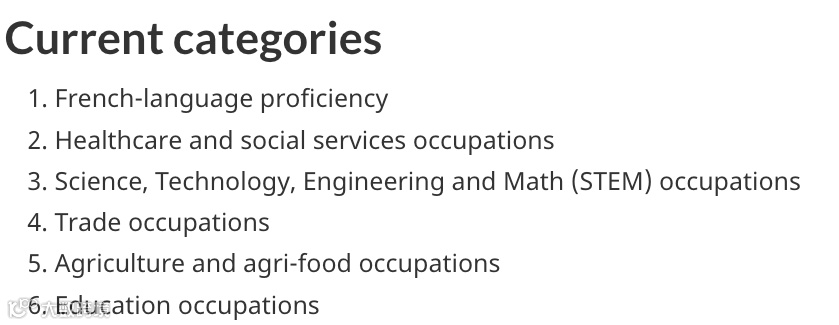 此外,除了继续满足法语移民目标,继续抽取法语能力强的候选人外,未来满足医疗、贸易和教育方面的迫切需求,移民部将重点抽取以下领域的工作经验的候选人。