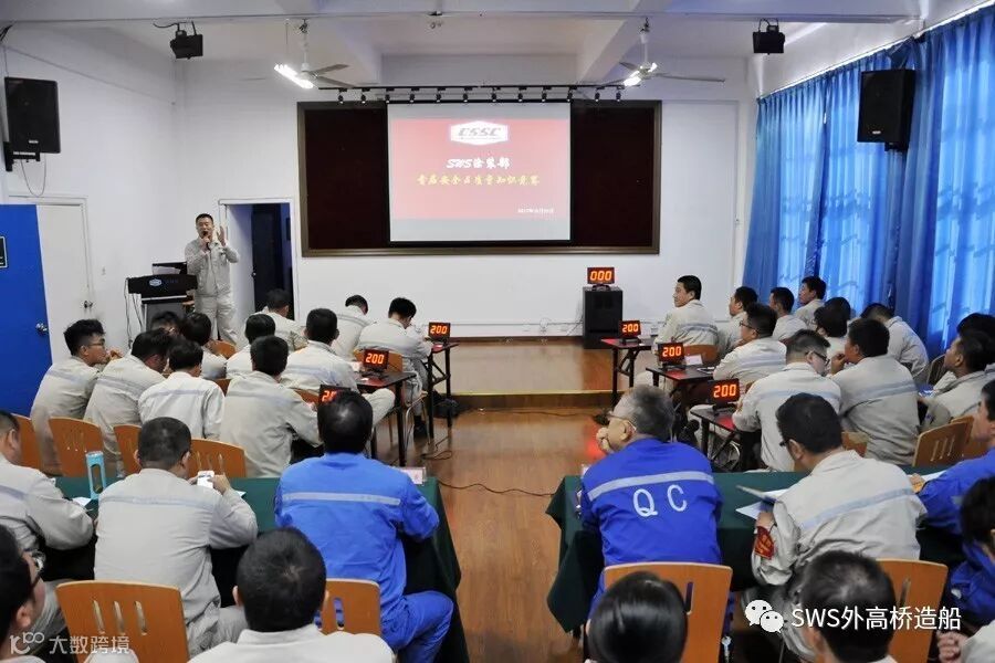 在党的十九大召开之际,为夯实现场管理人员的安全、质量理论知识,提升员工知识技能和安全防范能力,促进现场管理与理论运用的相互转化,10月25日下午,外高桥造船涂装部在部门生活楼多功能厅举办了“安全、质量知识竞赛”,各作业区积极报名参赛,作业区生产主管以上管理人员、各工程承揽单位现场负责任及大带班观摩了比赛。比赛特邀安环保卫部、品质保证部领导担任评委。