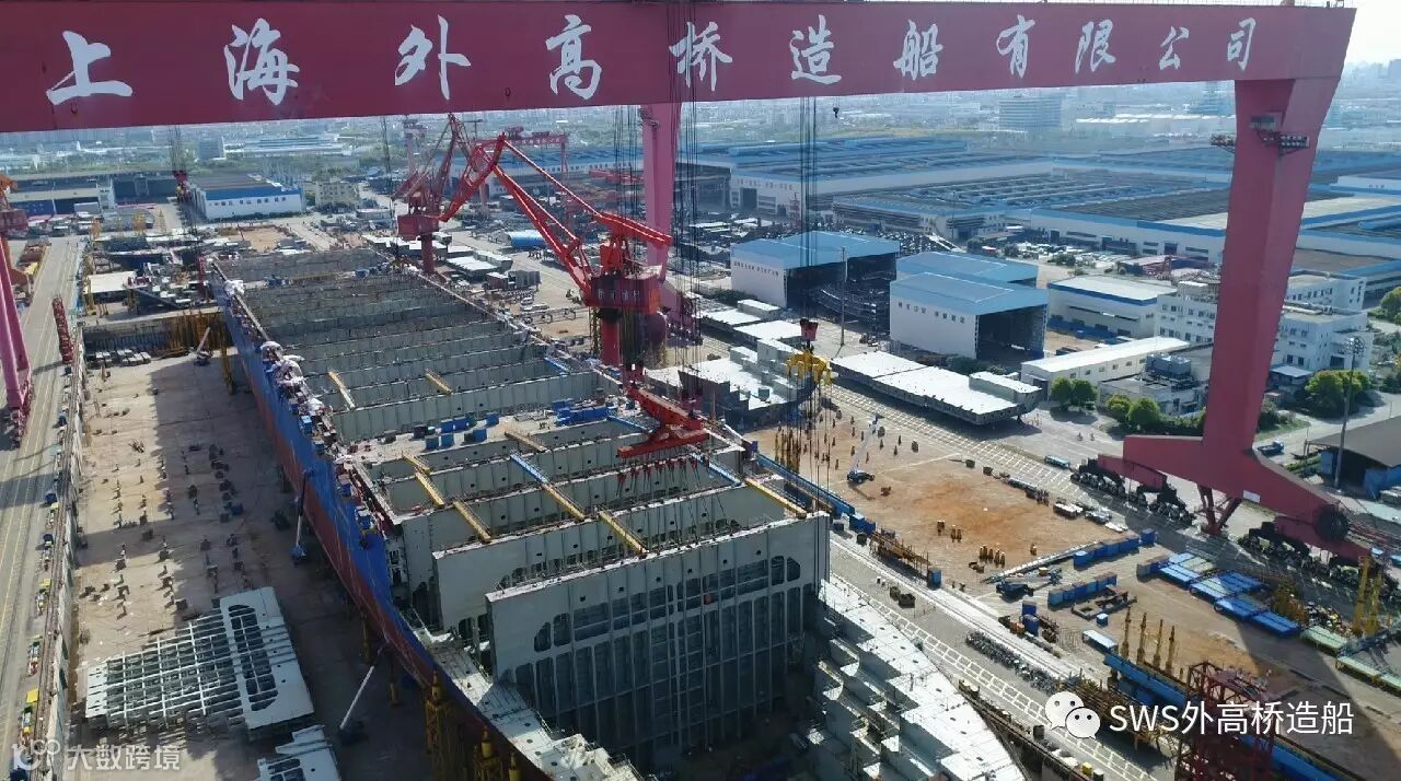 又讯,在外高桥造船本部由公司为中远海运集运建造的20000箱集装箱船,H1413即将完成船体贯通,基本具备了轴舵系拉线照光条件,正积极准备完善报验状态。根据船型特点,船厂和船东船检沟通、配合,基本做到了隔仓总段涂装完工后下坞搭载,试箱工作开展有条不紊。