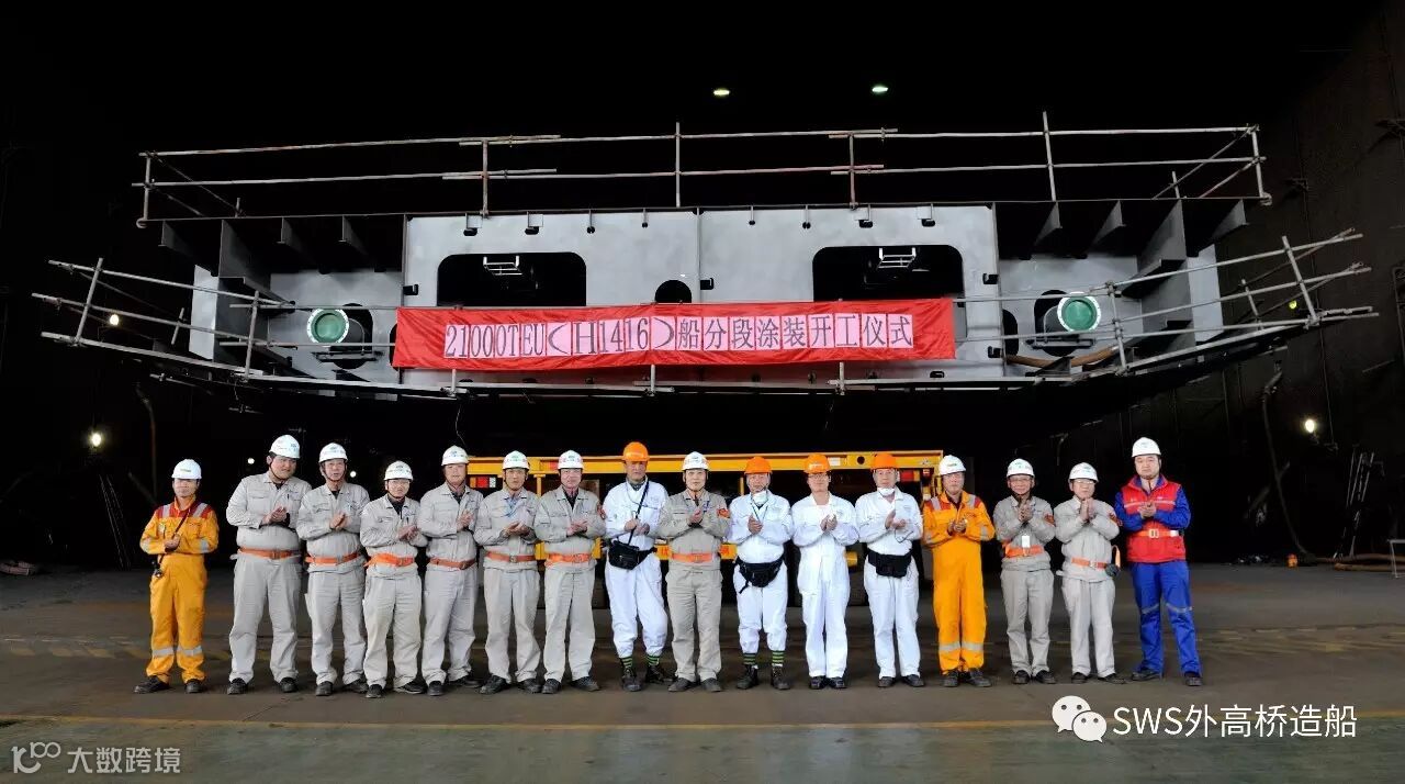 4月13日,外高桥造船在长兴重工举行了简单而又极具意义的世界最大21000箱集装箱船H1416船分段涂装开工仪式,庆祝21000箱集装箱船首制船首个分段对外冲砂提交报验一次通过,受到了监造组的高度评价。公司副总经理、长兴重工常务副总经理陈卫平,长兴重工生产总监郭长林,中海集团涂装监造组组长叶正言,佐敦油漆公司及相关部门负责人参加了仪式。