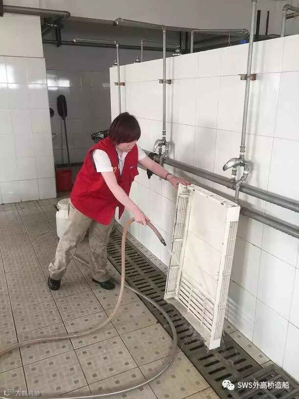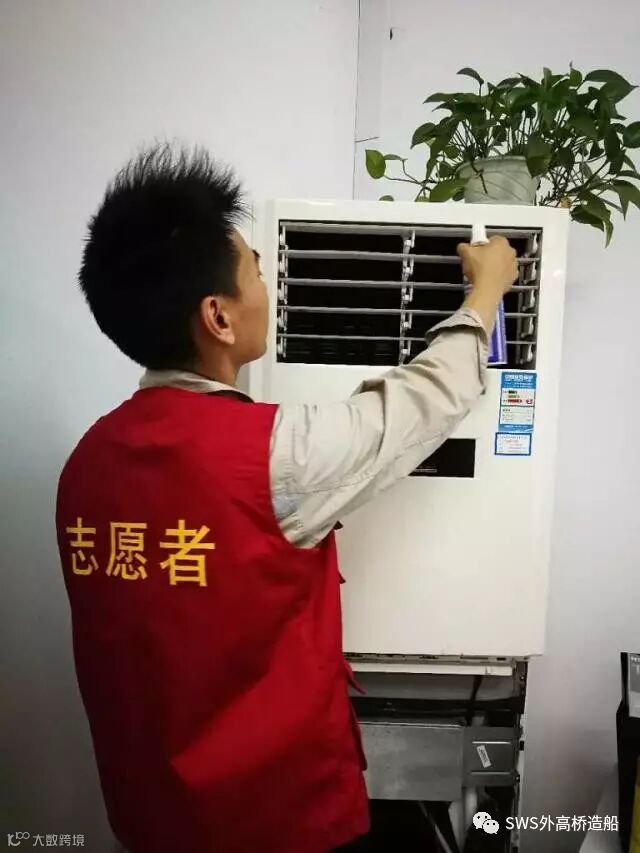 随着高温临近,船装部正根据公司防暑降温要求,积极落实一线员工高温休息室。为使员工能够在更为舒适的环境下得到充分的休息,船装团总支考虑到休息室内的空调积灰,不仅工作噪声大,有异味,由其是在梅雨季节,更加速了细菌及霉菌的滋生,对室内环境造成污染,极易危害员工身体健康。于是,船装团总支立即策划开展空调消毒清洗志愿活动。