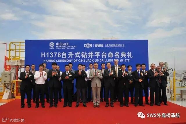 就在外高桥造船民船交付量势如破竹之时,海工装备方面也不甘落后,有了重要的新突破。公司与山东海洋集团有限公司合作的CJ46型自升式钻井平台第一个项目H1378海工平台在“外高桥海工”隆重命名,命名人山东海洋集团有限公司副总经理赵显福将新船命名为“ENERGY EMERGER”。