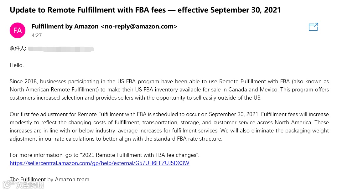将计划于2021年9月30日对亚马逊物流远程配送费用进行首次调整。配送费用将适度增加,以反映北美地区配送、运输、仓储和客户服务成本的变化。