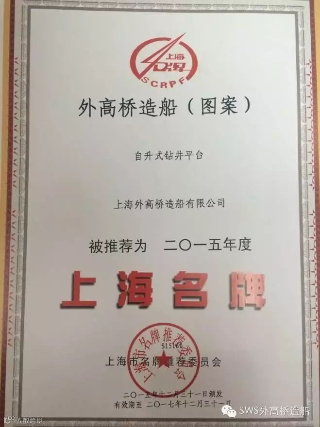 据悉,公司申报的2项品牌产品是在547项品牌产品中突出重围,最终评审通过的。其中,“好望角型散货船”早在2013年就被评为“上海名牌”,此次顺利通过复审;“自升式钻井平台”是第一次申报该荣誉并通过所有审核,成为“2015年度上海名牌”。