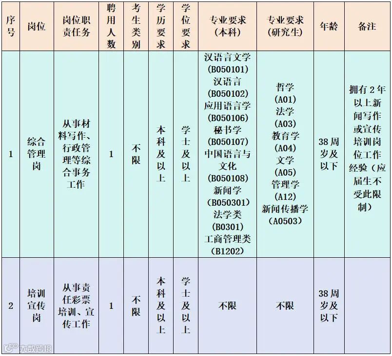 本次招聘岗位数量2个,招聘人数共2人,分类如下表: