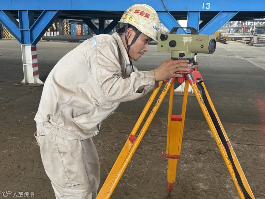 工作中,杨中祥借助水准仪和全站仪这些“火眼金睛”,凭借精益求精的工作作风和严谨细致的工作态度,使船体分段内的构件对接如燕尾榫般精准咬合。他不仅追求工艺精准,更注重团队技术传承,将多年积攒的测量技巧和工作心得无私分享给新员工。