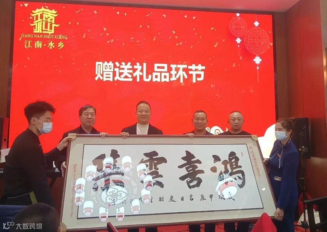 ▲送上开业字画,祝贺江南水乡开业大吉、生意兴隆、财源广进