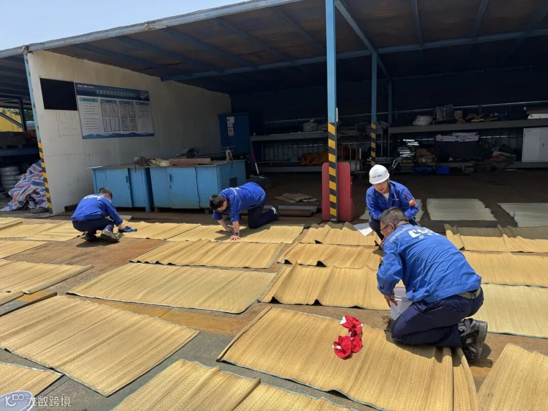 各科室、作业区的二十余位青年员工有序分为活动准备组、凉席擦洗组、凉席回收组,分别铺散、消毒、清洗,各司其职、头顶烈日、埋头苦干。经过一个多小时的辛勤付出,四百余张经过擦洗和晾晒的凉席被重新整理、分组并有序摆放,后续将分发至每位工人。