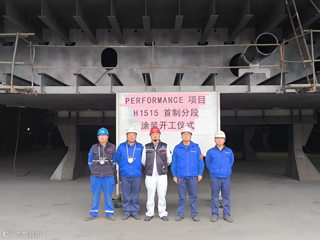 12月10日上午,H1515船首制分段231分段冲砂外检报验顺利通过,Performance项目H1515船首制分段涂装顺利开工,船东代表及各相关部门负责人参加开工仪式。此次开工仪式标志着继EPS、Thenamaris、UML、Cape Shipping项目后,又一114K POT船顺利开工。