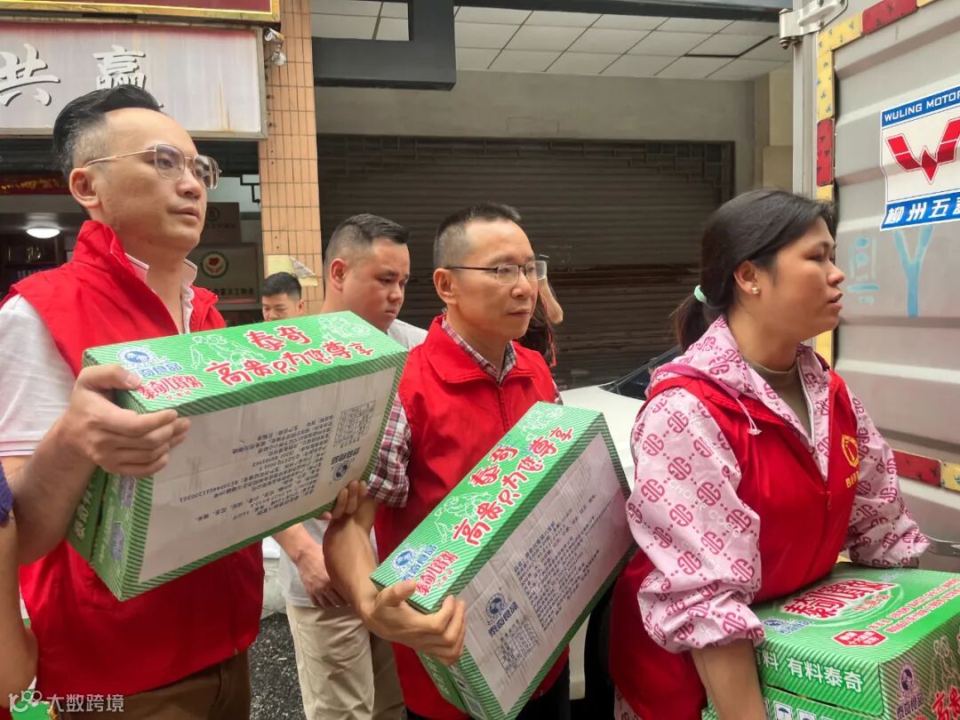 ▲爱心人士搬运物资