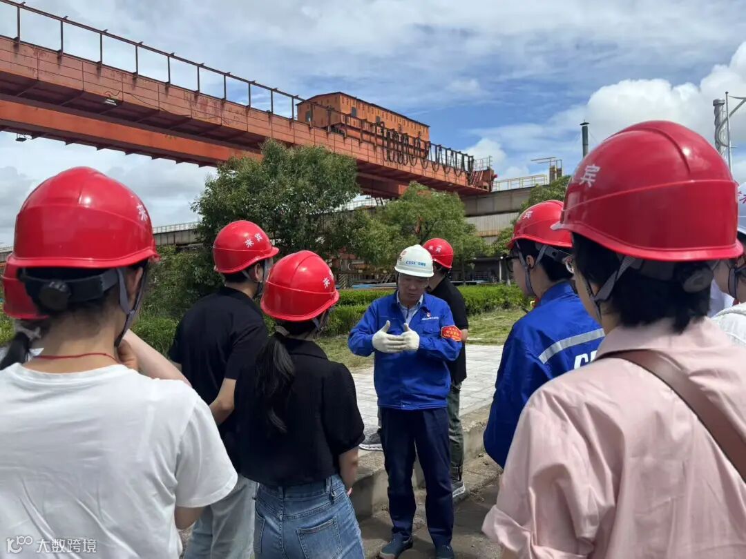 师生一行按照现代船舶建造流程,依次参观了钢板库、联合车间、浮体车间、上建建造区域、高台以及码头等生产区域。在钢板库,大家详细了解了现代化仓储管理的运作模式,近距离观摩了船舶分段制造的先进工艺和设备,全面了解了船舶舾装、涂装等关键环节的实施过程。从钢板切割到分段组装,再到舾装和涂装,每一个环节都充分展现了造船工业的精密制造水平。