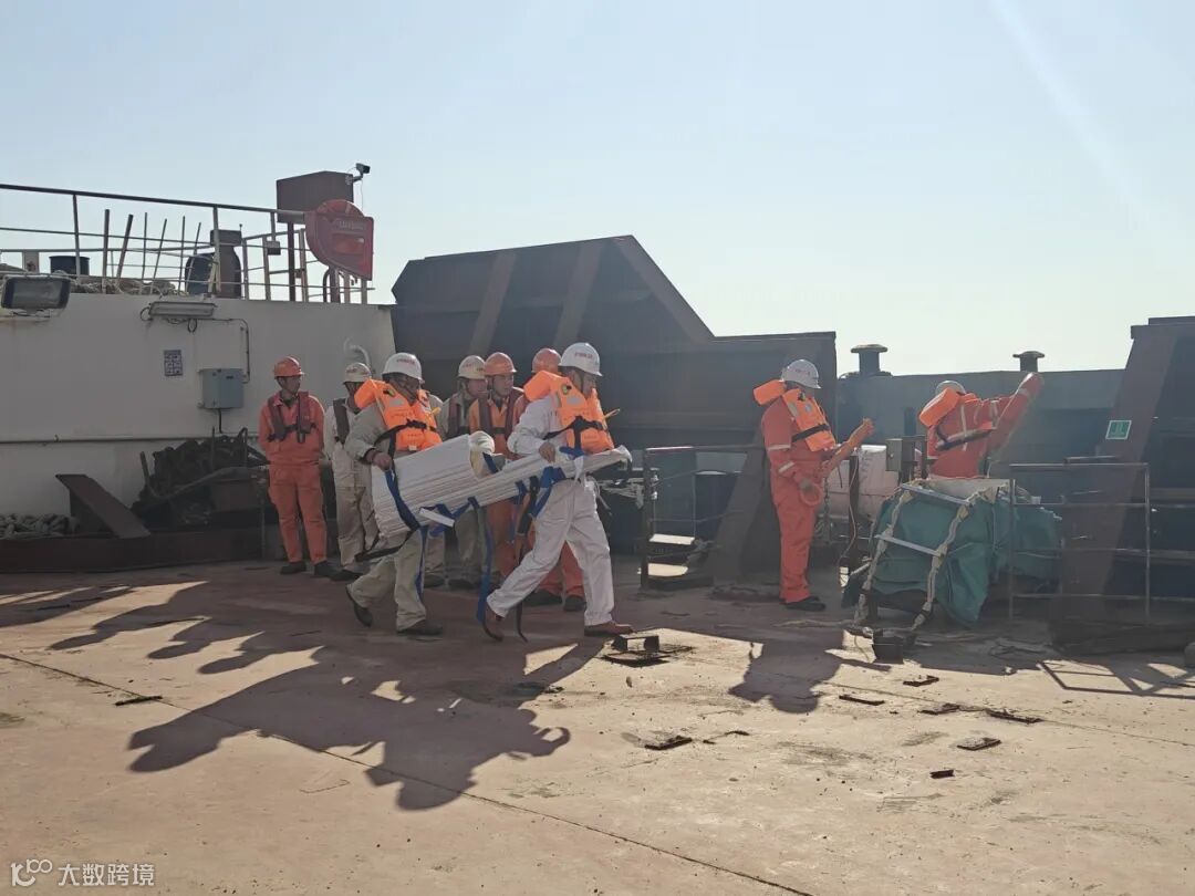 在船舶作业环境中,人员落水是较为严重的安全威胁之一。为让船员们进一步熟悉船舶人员落水的应急处理流程,强化安全意识和自我保护、救援应急能力,12月17日,生产保障部联合制造部开展了船舶人员落水应急演练,驳船管理人员、船员、海绑作业人员等参加。