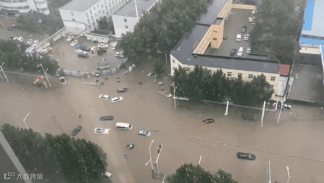 7月20日,19:00,蜜雪总部楼下被暴雨全部淹没,水位高至胸口…