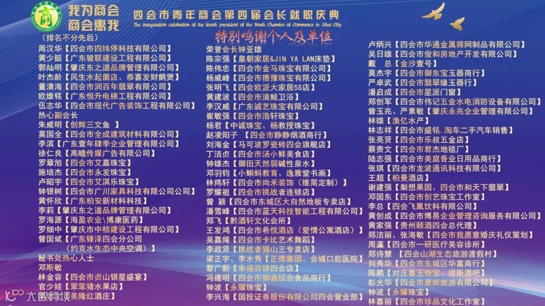 最后,大会在热烈的掌声中圆满落幕。此次换届大会的成功举办,不仅为四会市青年商会注入了新的活力和动力,也为广大青年企业家们提供了一个展示才华、交流合作的广阔舞台。相信在新一届领导班子的带领下,四会市青年商会一定能够迎来更加辉煌灿烂的明天。