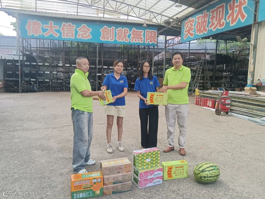 活动当天,执行会长黄少挺,常务副会长兼工委会主席伍志华,常务副会长莫国全,执行秘书长高迎迎,副秘书长叶敏芳,理事黄秀芳等一行人早早地集结,满载着精心准备的清凉物资——清凉饮料、西瓜等,踏上了前往商会会员企业的征途……每一个忙碌的身影都成为了我们此次行动的重点关怀对象。