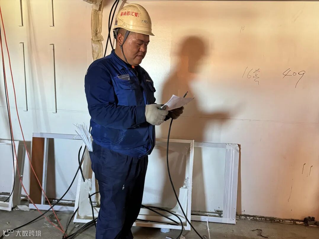 梁师傅是一位不足30岁的年轻电工,却有着超越年龄的丰富工作经历和踏实肯干的工作态度。在闷热高温的室内工作环境下,他始终坚守岗位,认真对照图纸辨别电缆的各个节点,他说:“天气热,我把电缆理得细致一些,大家就能减少很多工作量。”简单的话语、汗水下的笑容饱含着他对工作的热爱和对同事的关心。