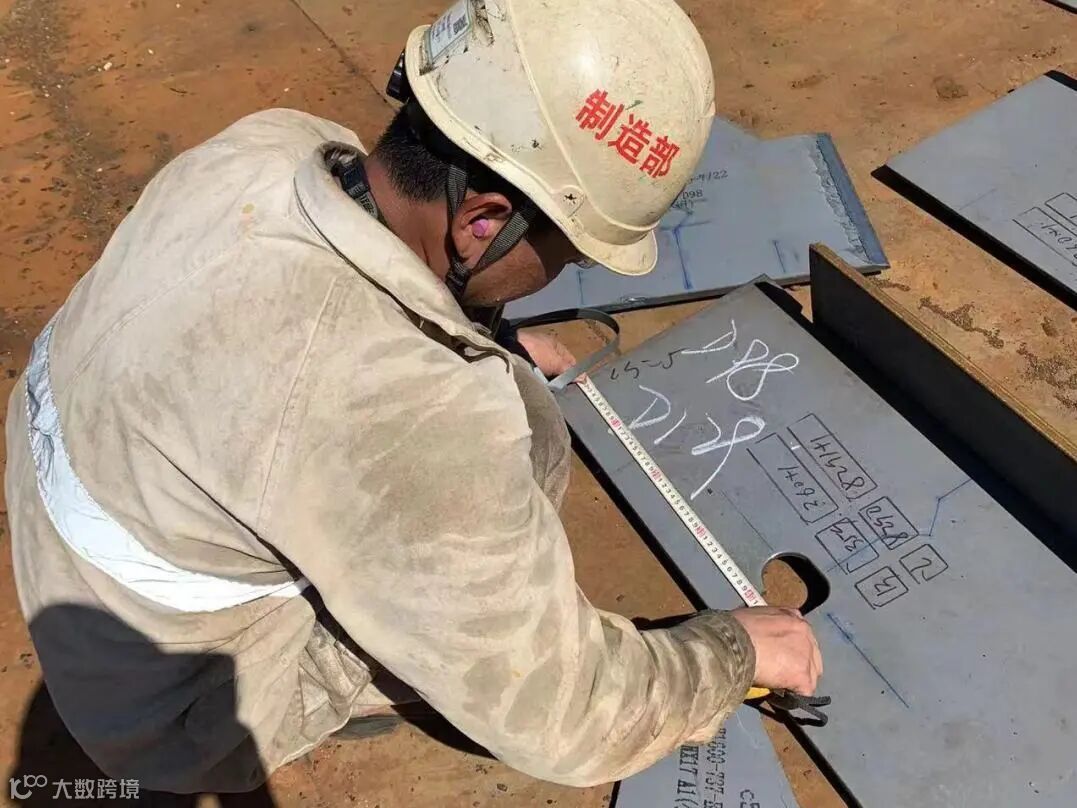时值酷暑,装配工徐师傅正在对片段进行装配划线,身上的汗水已经湿透衣服,脸庞也被晒得彤红。在外场炎热的天气下,他依然坚守自己的岗位,用心划好每一条线、装好每一块材料。