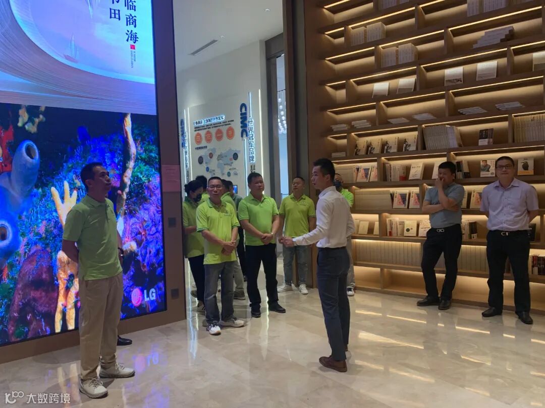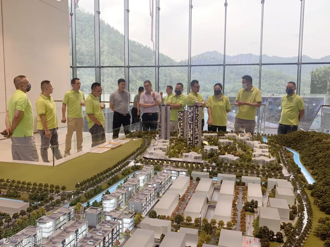 在中集产城四会中集智谷总经理林彦龙的带领下,商会成员一行参观四会市中集智谷项目,在项目品牌馆,销售经理吴洪泉向大家详细介绍中集集团的成长历史,中集智谷是中集产城在肇庆四会的首个项目,集企业定制总部、企业公馆、企业云端总部、塔级办公、孵化器、SOHO六大产研办公产品,及往宅项目滨江华宅国际产业社区于一体,参观交流中,随行人员对项目轻奢、领先的设计理念交口称赞。