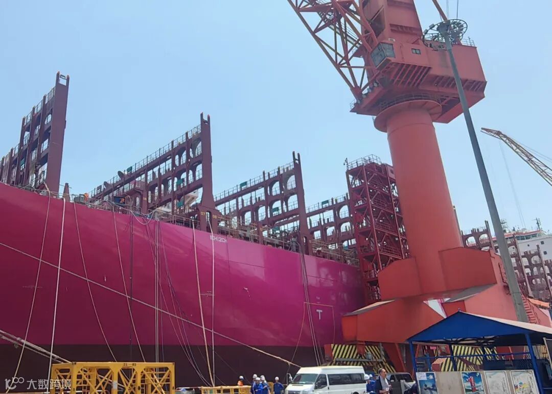 “与众不同”是我看见H1568船后对这艘巍峨巨轮的第一印象,在码头仰首巡望其粉红色的船体和船艏如盾牌一般的白色挡风板,这艘巨轮的每一个细节都透露着它的独特与不凡。随着正式登船,我第一次踏入了搭载在船体上的上层建筑内,在经验丰富的同事的引领下,我深入了解了我们此次试航过程中所承担的工作职责和报验项目。从甲板到上建,从驾驶台到机舱,每一次点头、每一次交流,都让我对即将到来的航程充满期待。