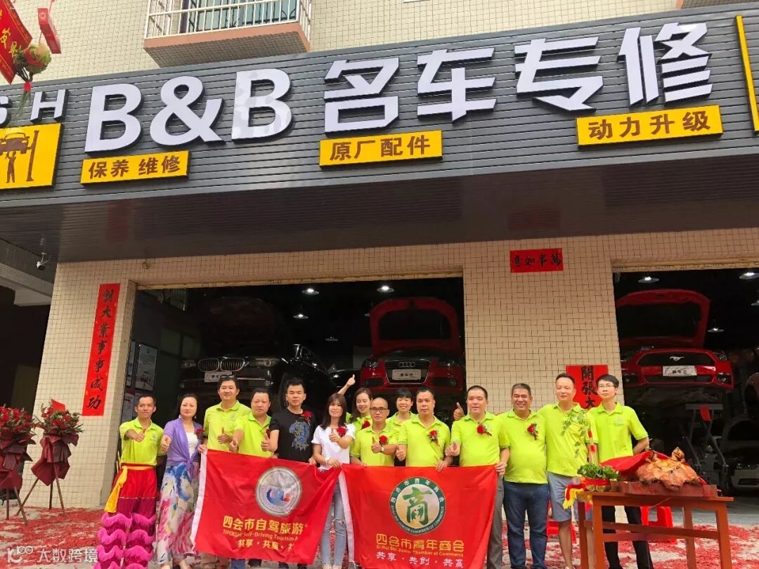 2019年9月10日,四会市青年商会会长钟亚雄、执行会长潘俊辉、党支部书记黄维谦、创会会长江灿权、义工协会会长黄荣娣、常务副会长/组长朱威明、伍志华,副会长郑创军,杨威峰,理事郑诗慧、会员陈世贤、叶敏芳、翟崇侦出席会员邹建威企业“B&B名车专修中心”开业庆典活动。祝贺B&B名车专修中心开张大吉,生意兴隆,财源广进。