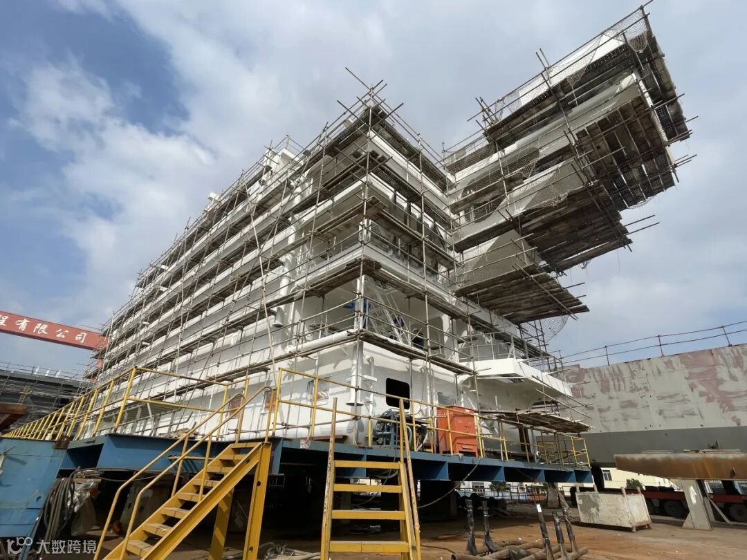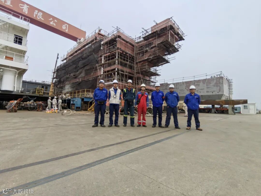 H1844A是公司承接的达飞13000TEU双燃料集装箱系列船的收官之战,为确保达飞H1844A-BZ21C上建高效高质量完工顺利实现回厂节点,涂装部严格生产管控,克服连续阴雨天气、前道紧急改单困难,组织赶工突击,加班加点抢抓生产进度,紧抓停雨间歇、见缝插针地进行涂装施工编排,顺利实现了上建外壁“三天两喷一覆涂”的任务节点。在质量交验方面,管理人员不舍昼夜开展质量内检,坚定了关键任务一次做对抢抓生产任务的决心。