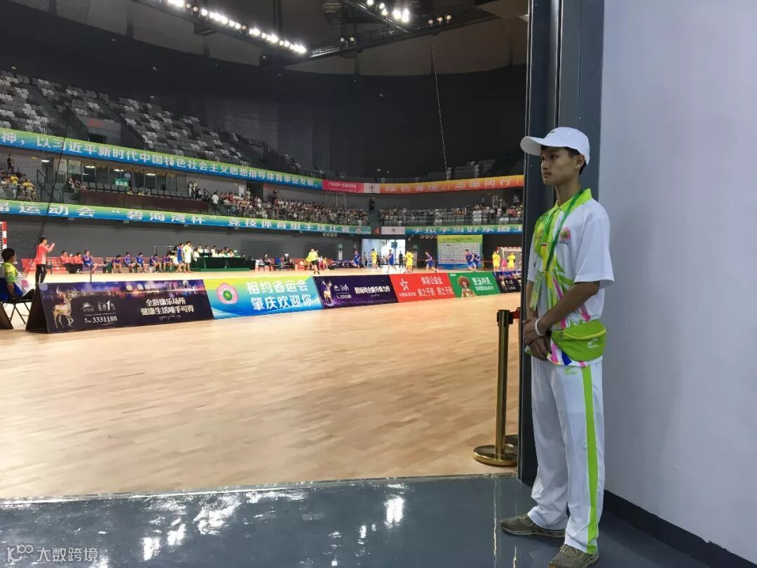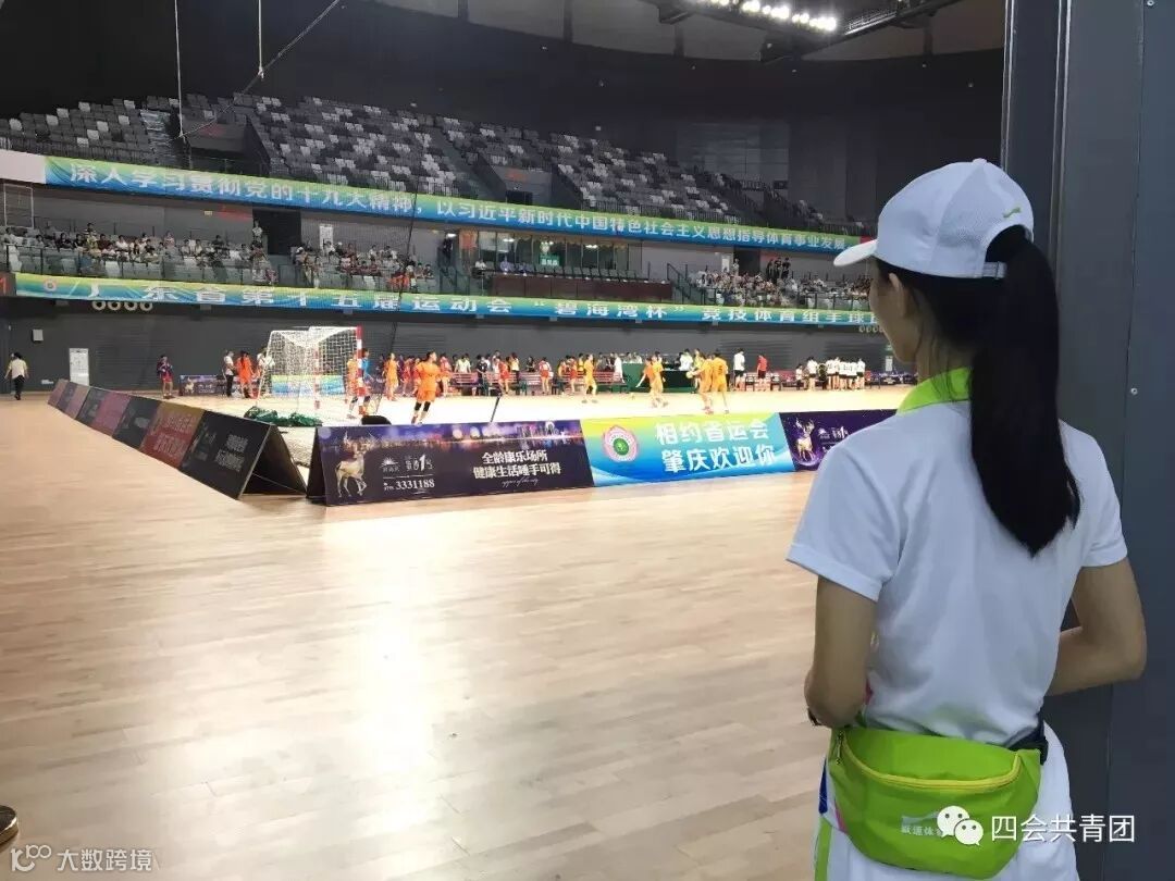 现在省运会的手球赛事在四会举行,我想着来感受一下比赛气氛。志愿者们很热情地扶我上来,很有亲切感,很周到,令我很感动。