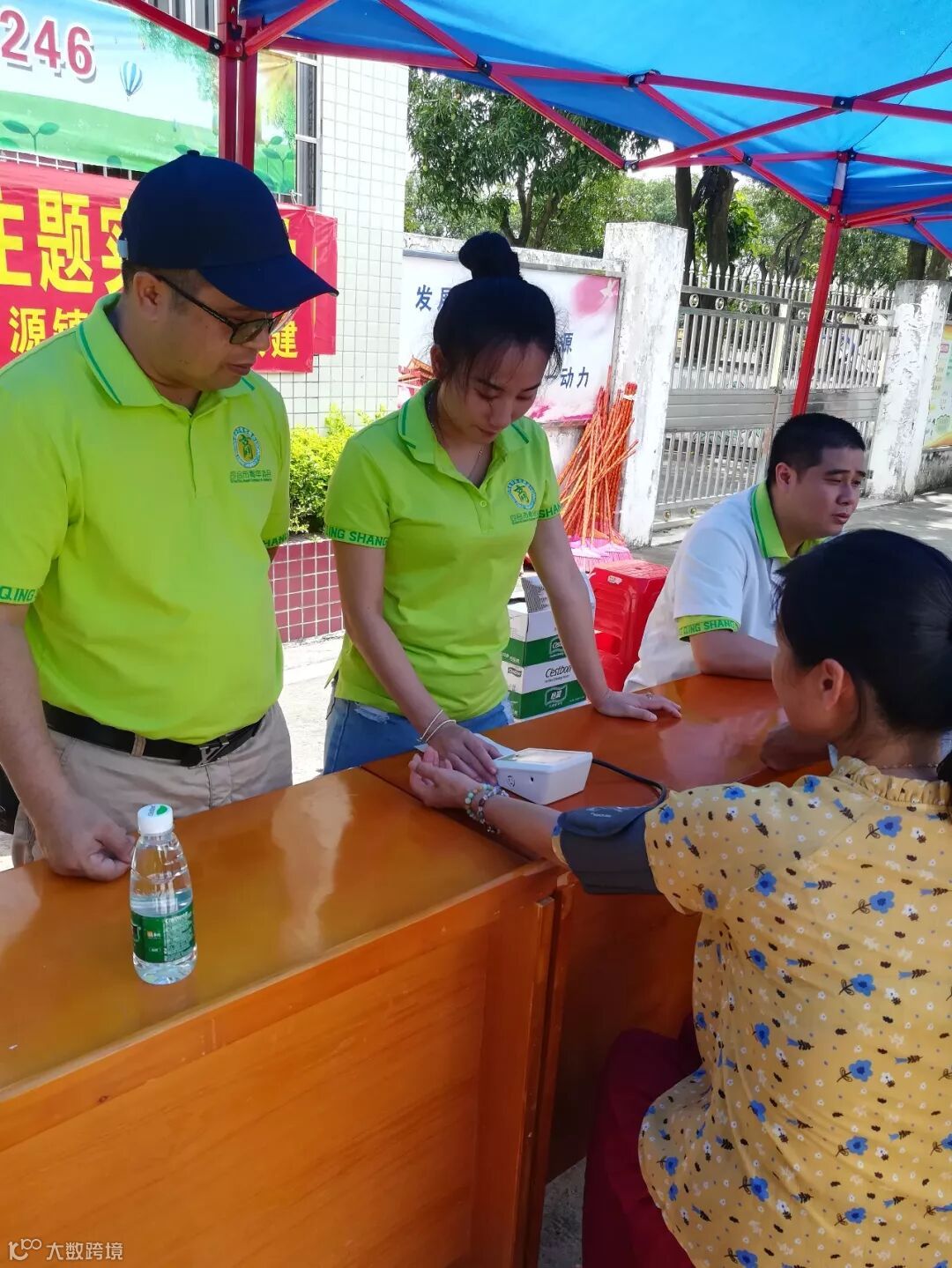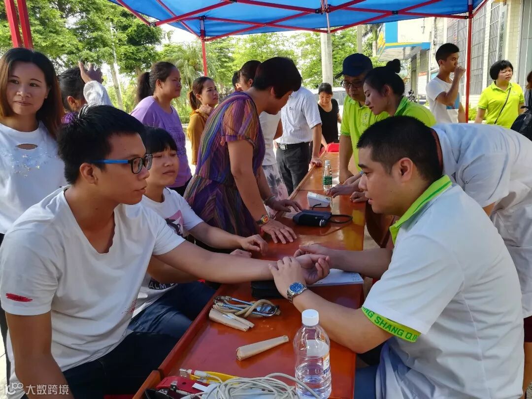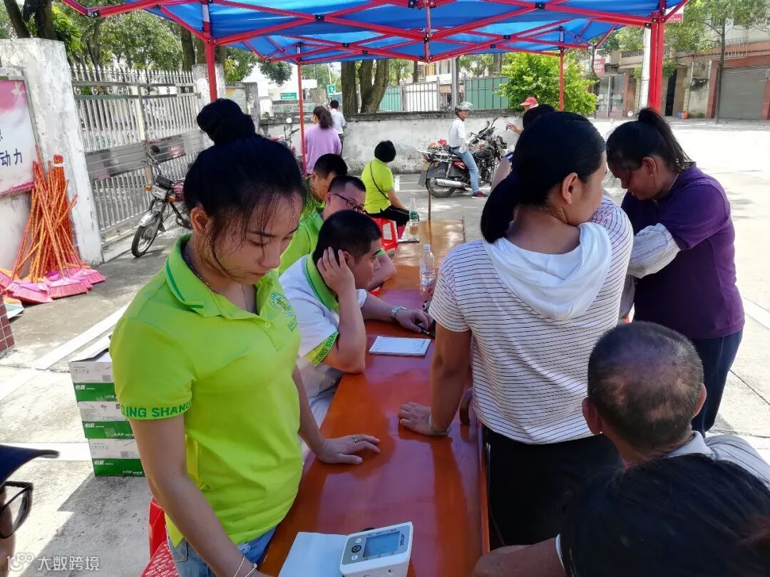 青年志愿者一行在罗源镇便民中心门前进行义诊活动,对村民进行测量血压、心电图、温医生一对一把脉、望闻问切、开具处方、耐心讲解个人健康状态以及宣传健康知识。