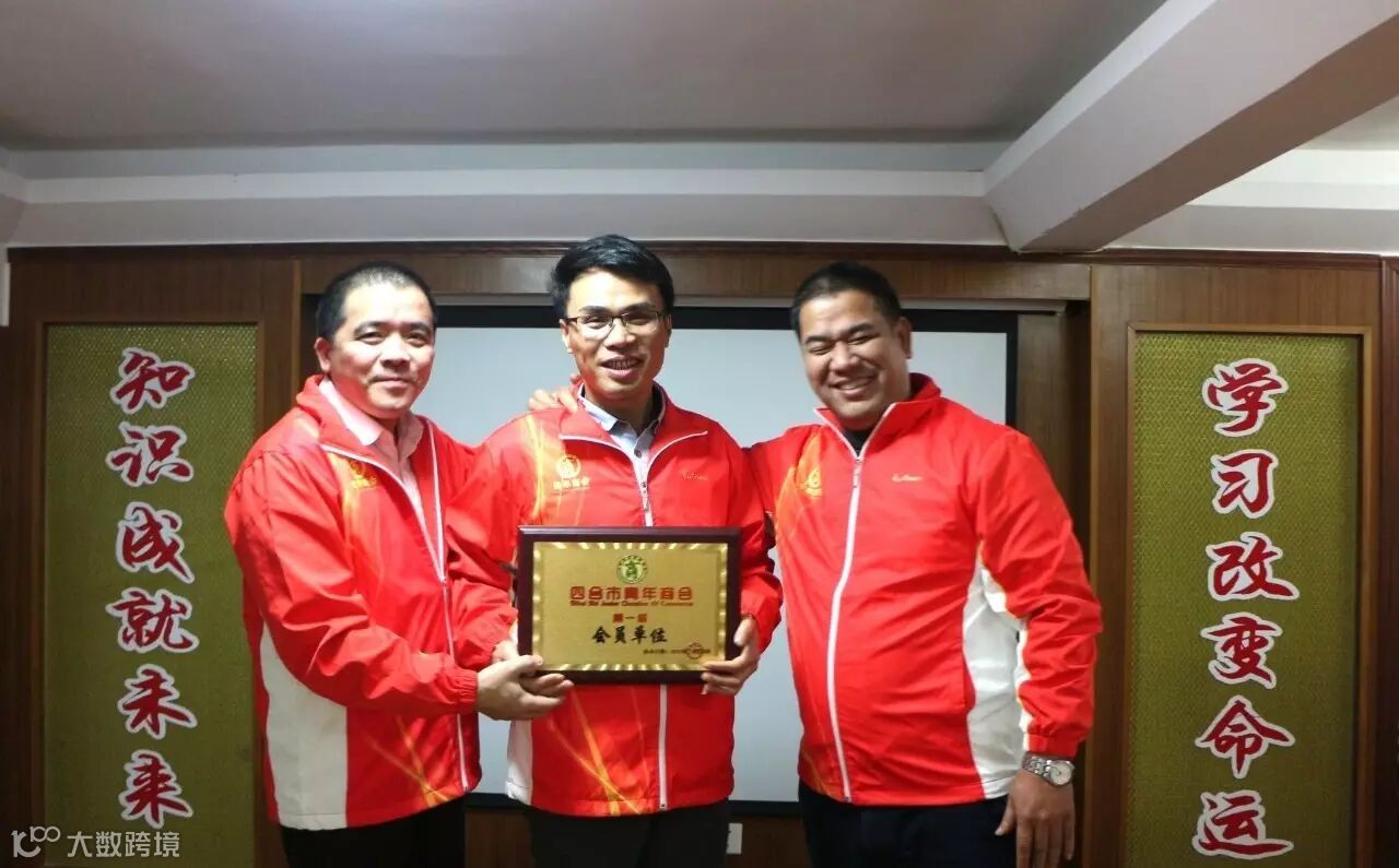 由四会市青年商会会长江灿权、副会长潘俊辉等为新入会员进行授牌!
