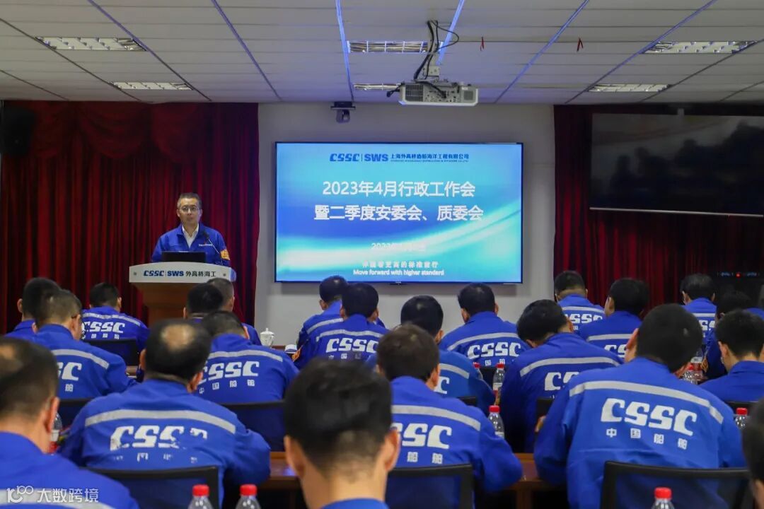 王金成首先传达了外高桥造船月度行政会议精神和工作要求,他表示经全体职工团结协力,4月超额实现经济指标和生产物量。他强调,安全生产方面,各级管理者要强化履职,持续关注员工安全教育及安全行为,时刻不能松懈。质量管理方面,各级管理者要以“中间产品零意见提交”为管理抓手,确保精度质量指标稳步增长,充分体现公司品牌形象。重点管理方面,各级干部要积极开展大调研,以问题为导向,形成一份可度量、可考核,有分量的调研报告。