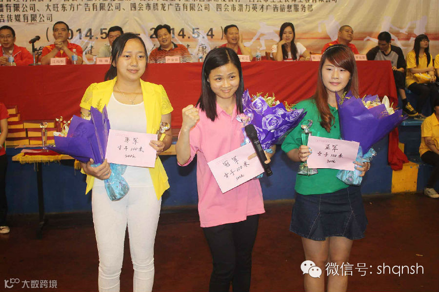 7、女子100米短跑:季军汪长勤(左边、新茶香园)、冠军梁美玲(中间、安家置业)、亚军曾思敏(右边、腾龙广告)