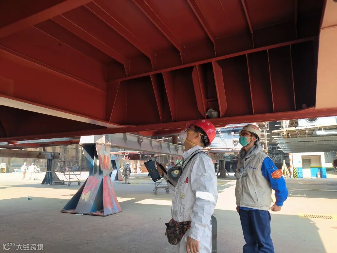 据悉,绑扎桥是立柱和薄板所组成的一种板架式结构,主要用于绑扎、紧固箱船甲板上方的集装箱,防止其在风浪中倾斜、坠落,关系箱船甲板堆重指标。H1550船绑扎桥共计18对,此次绑扎桥总段的顺利交验为后续批量化制作积累了宝贵经验。