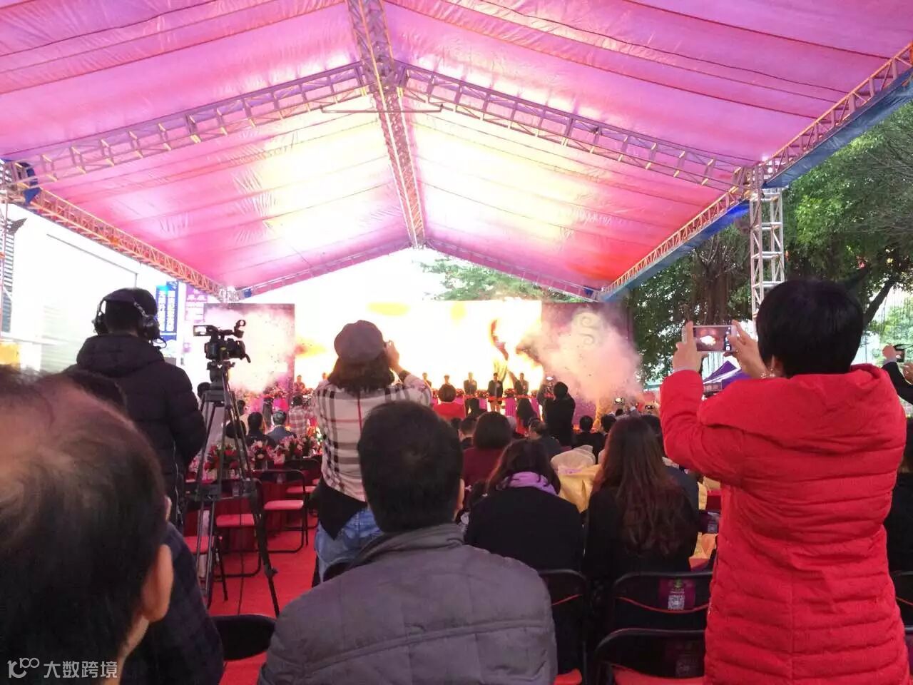 图为上品神韵的歌舞表演,舞蹈员们在风雨兼并的寒冷条件下,依然为我们送出精彩的舞蹈!