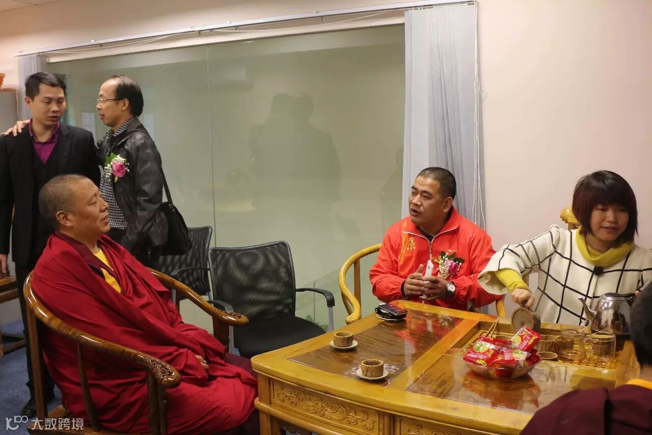 图为四会市青年商会副会长潘俊辉先生与活佛交流。